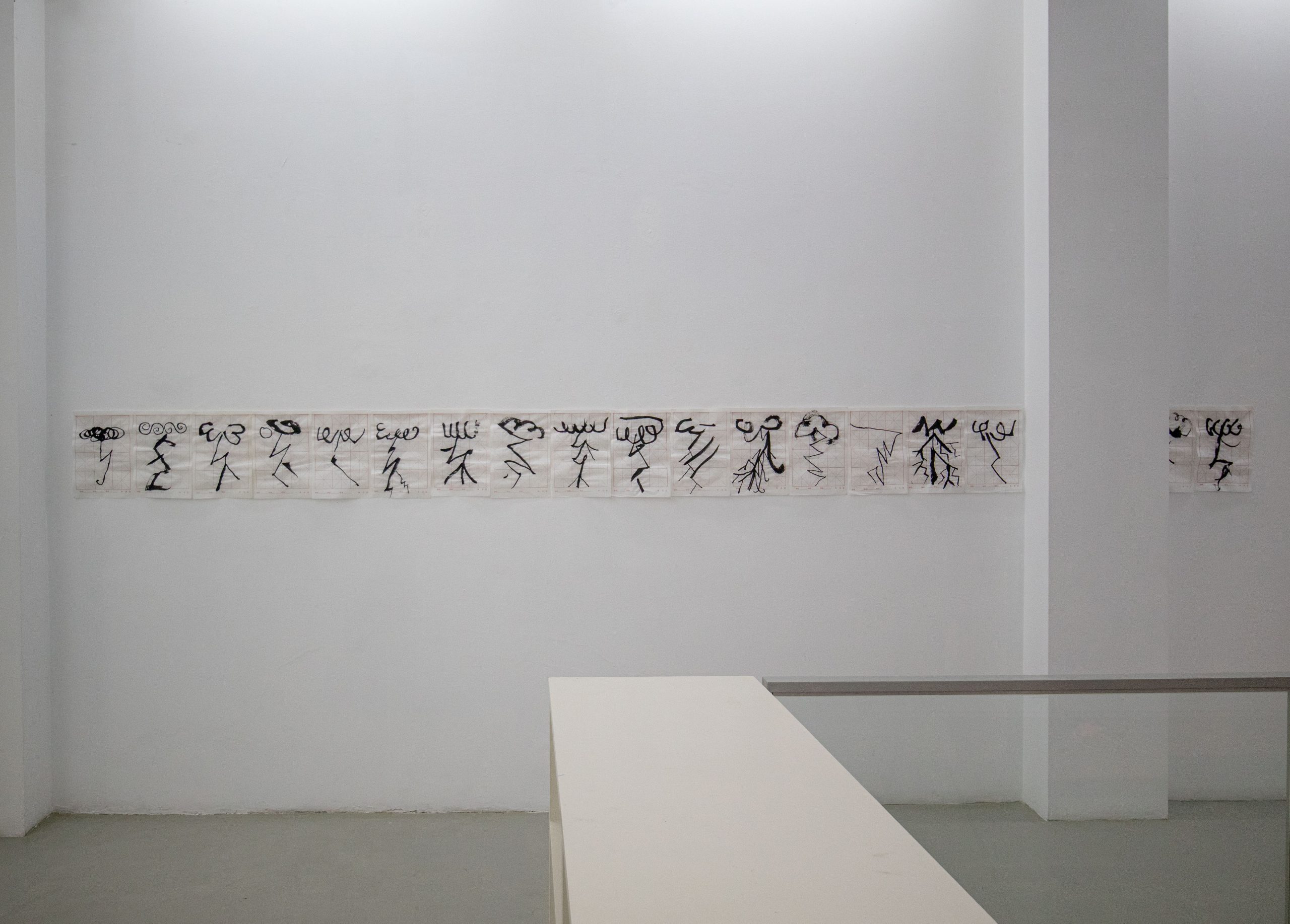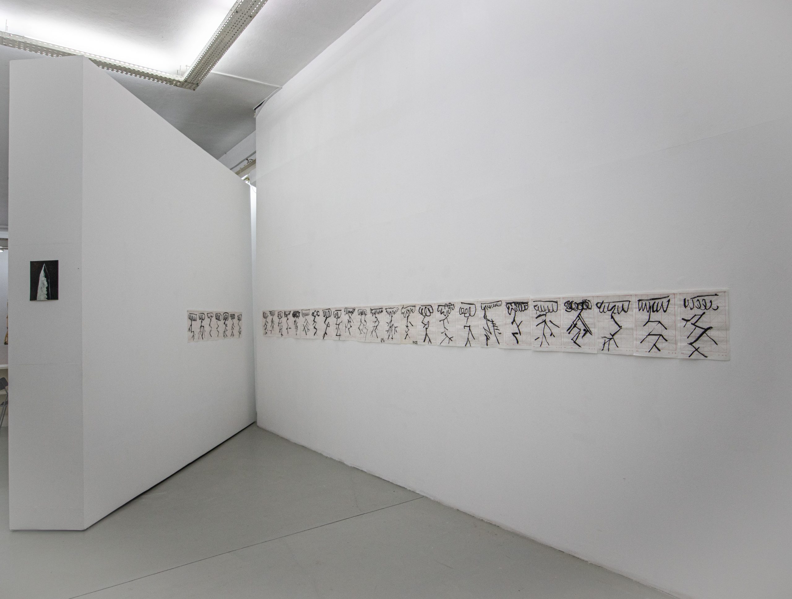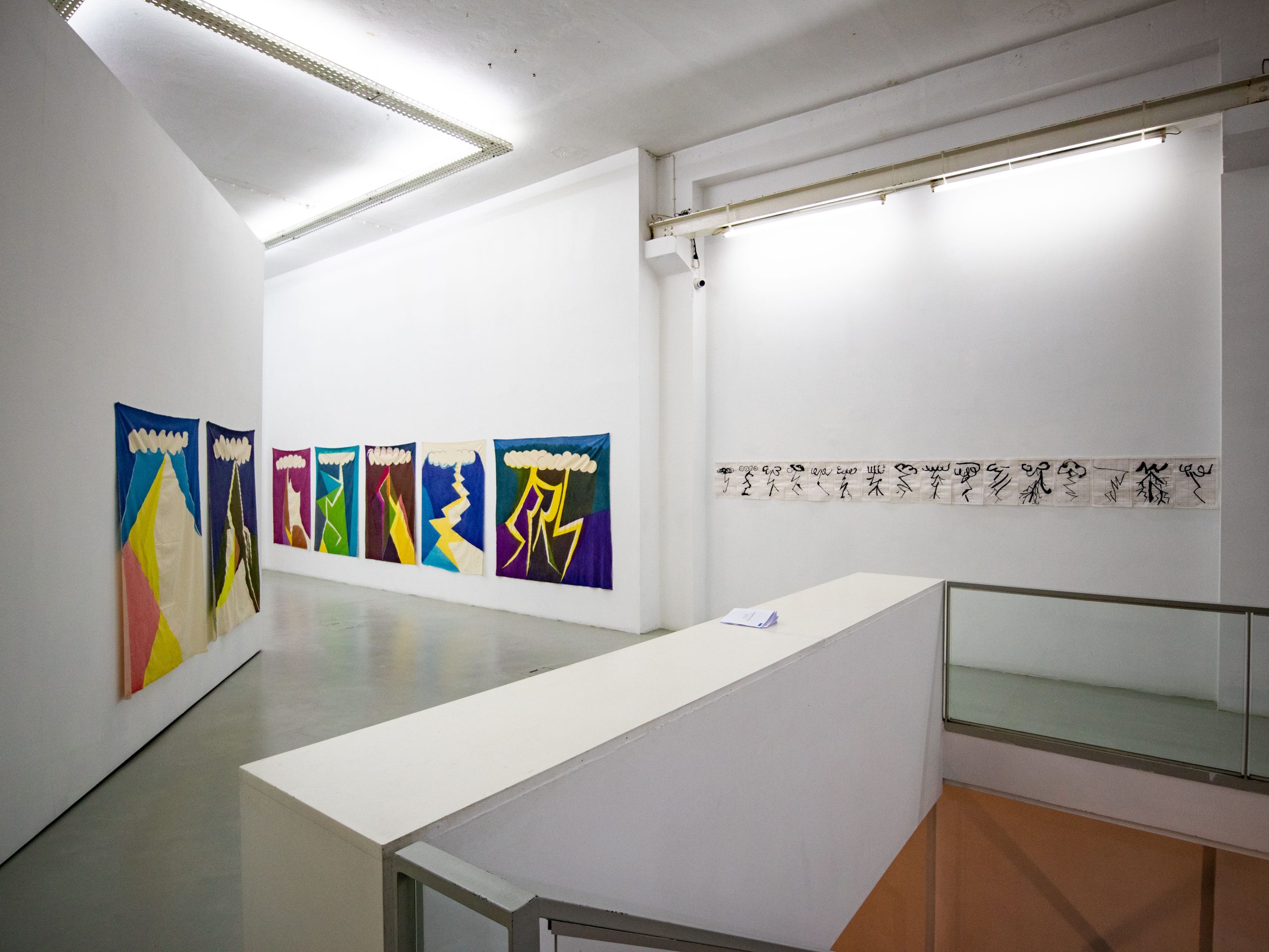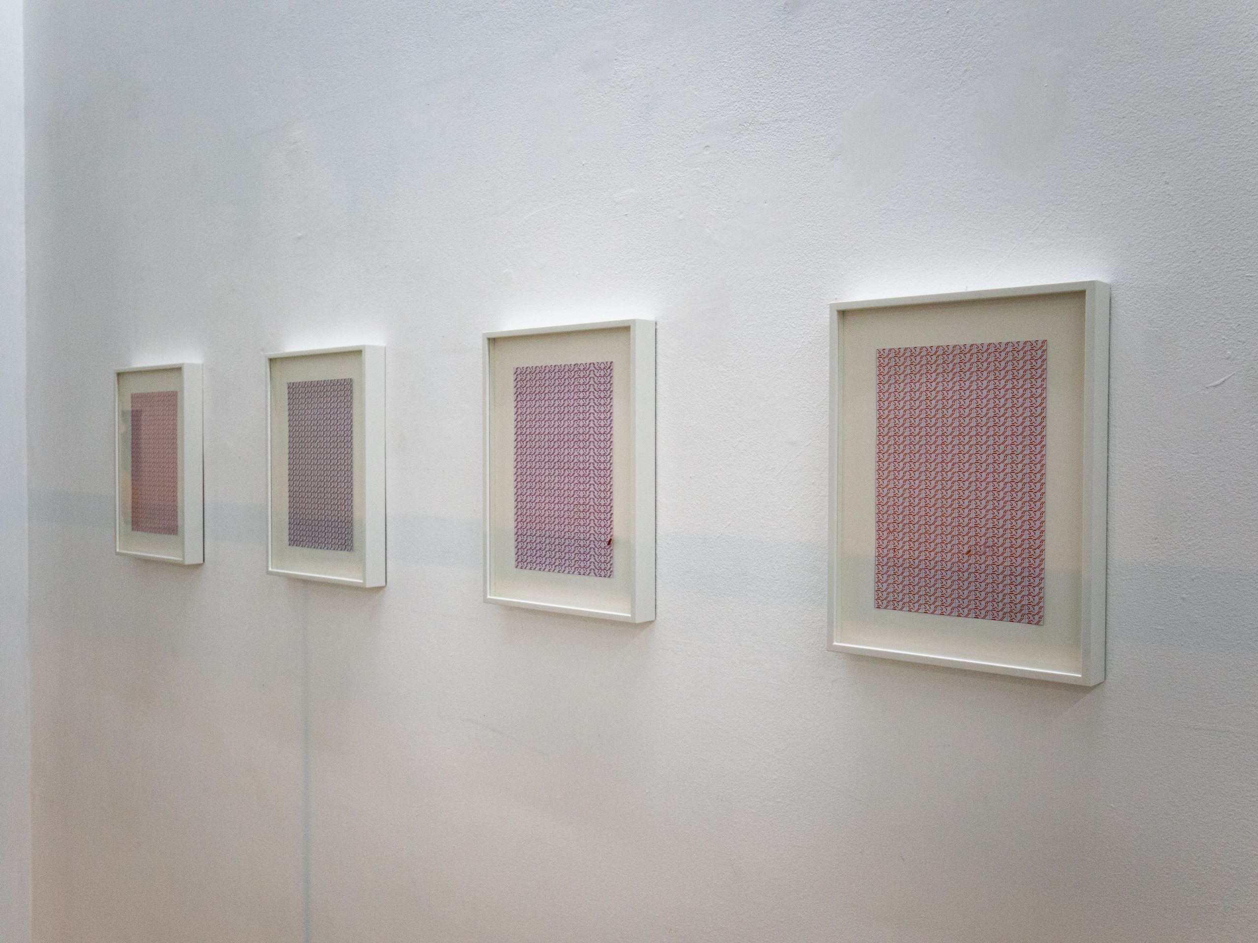 A ideia de estrutura é algo transversal aos três artistas, que exploram o conceito de diversos modos. Sérgio Leitão organiza as suas composições em filas, pontuadas por pequenas janelas de luz e cor, que contrastam com os fundos pretos ou brancos. Por outro lado, André Sousa brinca com os limites do suporte, desafiando a nível compositivo, a ideia de finitude, o desenho do raio extrapola as fronteiras da tela. A grelha vermelha perfeitamente estruturada na folha de papel chinês forma a base para as consecutivas tentativas do desenhado caligráfico; por oposição às lonas de algodão, onde quase que passa despercebido esse esqueleto, por meio das dobras toscas e subtis da própria tela.